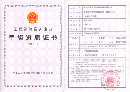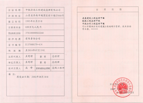 1、公司監(jiān)理資質(zhì)證書(shū)
