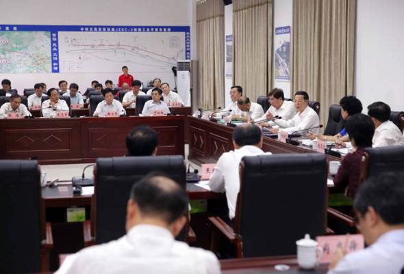 在京張鐵路八達嶺隧道2號斜井施工現場,張高麗首先觀看了中鐵咨詢制作的京張鐵路沙盤及動畫演示,察看了隧道工程進展情況,慰問了設計、施工、監理等單位的參建員工,并在工地會議室主持召開座談會,聽取京張鐵路等規劃建設進展情況匯報,對設計工作給予了充分肯定。