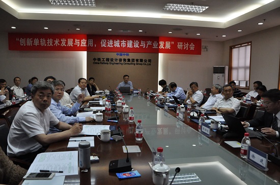 2018年6月22日,由中國中鐵“中國單軌交通發展研究中心”、中鐵設計集團、中鐵設計集團院士專家工作站主辦的 “創新單軌技術發展與應用,促進城市建設與產業發展”研討會在京召開。中國工程院聶建國院士、楊秀敏院士、梁文灝院士、杜彥良院士、王復明院士、陳湘生院士,中國中鐵股份有限公司副總裁、總工程師劉輝、中國機械工業集團有限公司總經理徐建、住房和城鄉建設部標準定額研究所處長雷麗英、山東大學副校長李術才、東北大學副校長馮夏庭、河海大學王媛院長、中鐵高新工業股份有限公司總經理李建斌、中鐵科工集團有限公司總經理林承朝、中鐵設計集團董事長、黨委書記李壽兵、總經理王洪宇、總工程師陳紅念、市場總監武農等領導及技術負責人共50余人參加了會議。王洪宇總經理主持會議。
