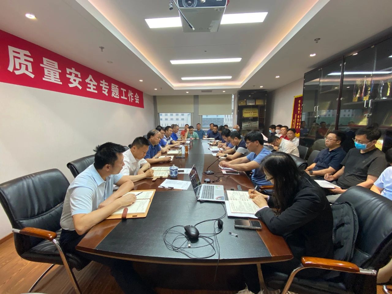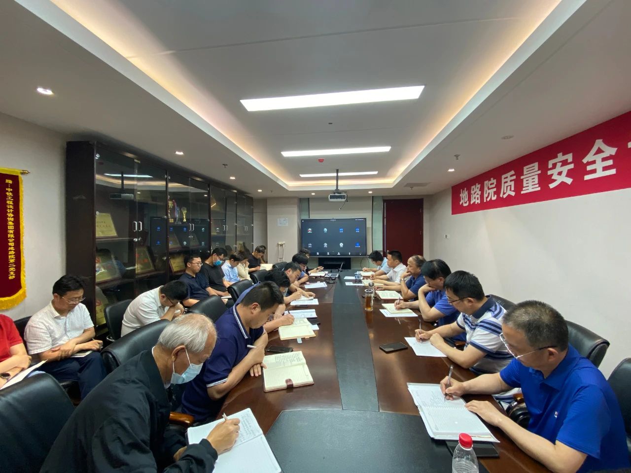 2021年5月31日下午,在集團公司“安全生產月”活動前夕,地路院召開質量安全專題工作會,對全院生產項目的安全質量自查結果進行反思總結,地路院全體班子成員、在京中層干部、各項目負責人共32人現場參會,集團公司科技處技術質量部副部長丁國璽到會指導,會議由地路院總工程師齊傳生主持