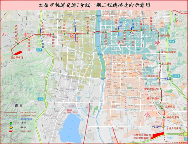 2.項(xiàng)目概況:太原市城市軌道交通1號(hào)線一期工程起于西山礦務(wù)局,終于龍城大街東站,經(jīng)過萬柏林、迎澤、小店三個(gè)行政區(qū),于太原市內(nèi)呈倒“L”形分布,東西向沿西礦街、迎澤大街,途經(jīng)客運(yùn)西站、理工大學(xué)、大南門、柳巷、五一廣場、太原站等客流集中點(diǎn),南北向先后沿太行路、馬練營路敷設(shè)。工程全線長24.38km,共設(shè)置車站22座,全部為地下站。工程設(shè)西山停車場一座,設(shè)馬練營車輛段與綜合基地一座;新建客運(yùn)西站、長風(fēng)東街站兩座主變電站。1號(hào)線與線網(wǎng)其它市區(qū)線合建共享控制中心。預(yù)計(jì)建設(shè)周期為5年。