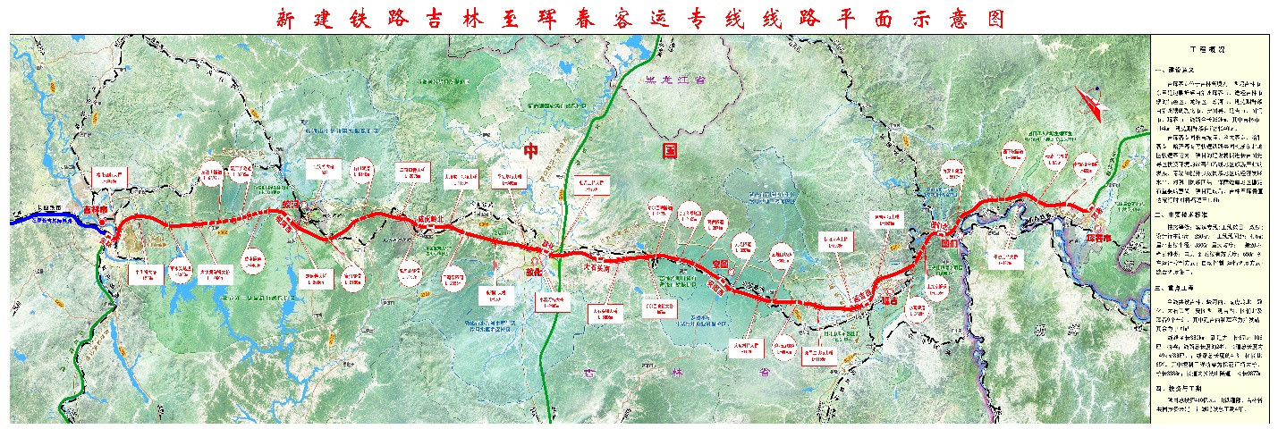 吉林至琿春高鐵位于吉林省境內,西起吉林市,途經蛟河、敦化、安圖、延吉、圖們等縣市,東止延邊朝鮮族自治州琿春市,線路全長360.986km,設計時速250km/h。吉林站為接軌站,新建蛟河西、威虎嶺北、敦化、大石頭南、安圖西、延吉西、圖們北、琿春共8座車站。