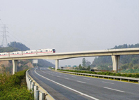 廣州軌道交通四號(hào)線列車采用直線電機(jī)列車,4節(jié)編組,最高運(yùn)行速度達(dá)90km/h。線路坡度達(dá)55‰,高架區(qū)間全長(zhǎng)22km,采用主跨30m,輔助跨度25m的整孔預(yù)制箱梁和節(jié)段預(yù)制箱梁。中鐵咨詢集團(tuán)承擔(dān)第二和第七標(biāo)段設(shè)計(jì)工作。